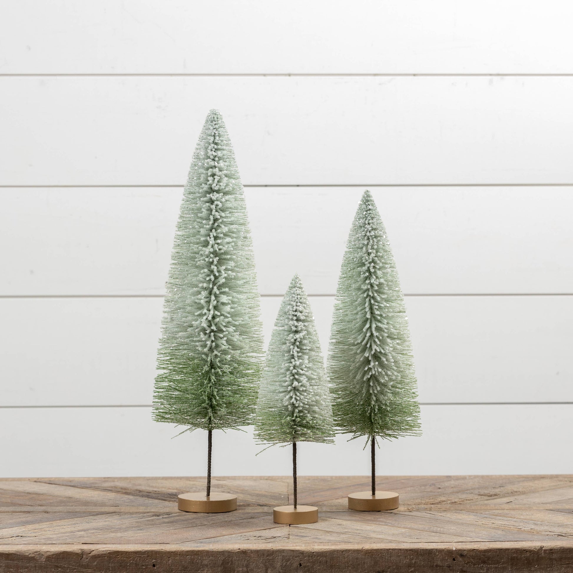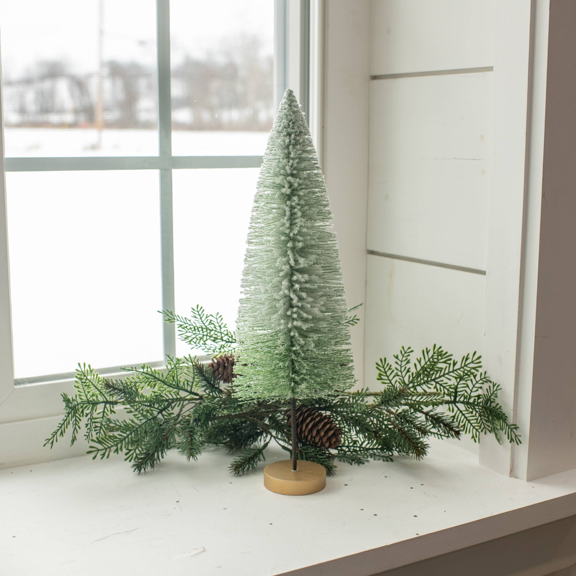 16" GREEN OMBRE FLOCKED LONG STEM BOTTLEBRUSH TREE