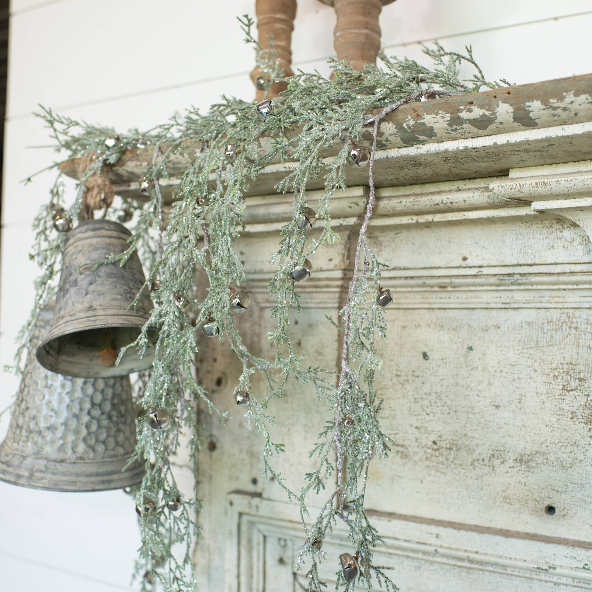 51" SILVER BELL & GLITTERED GREENS SWAG