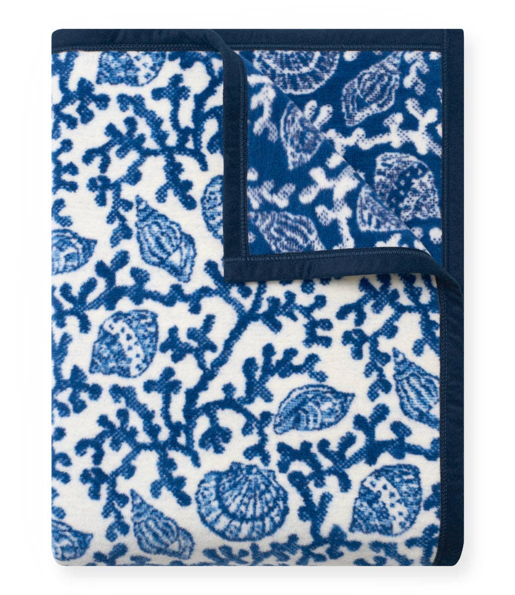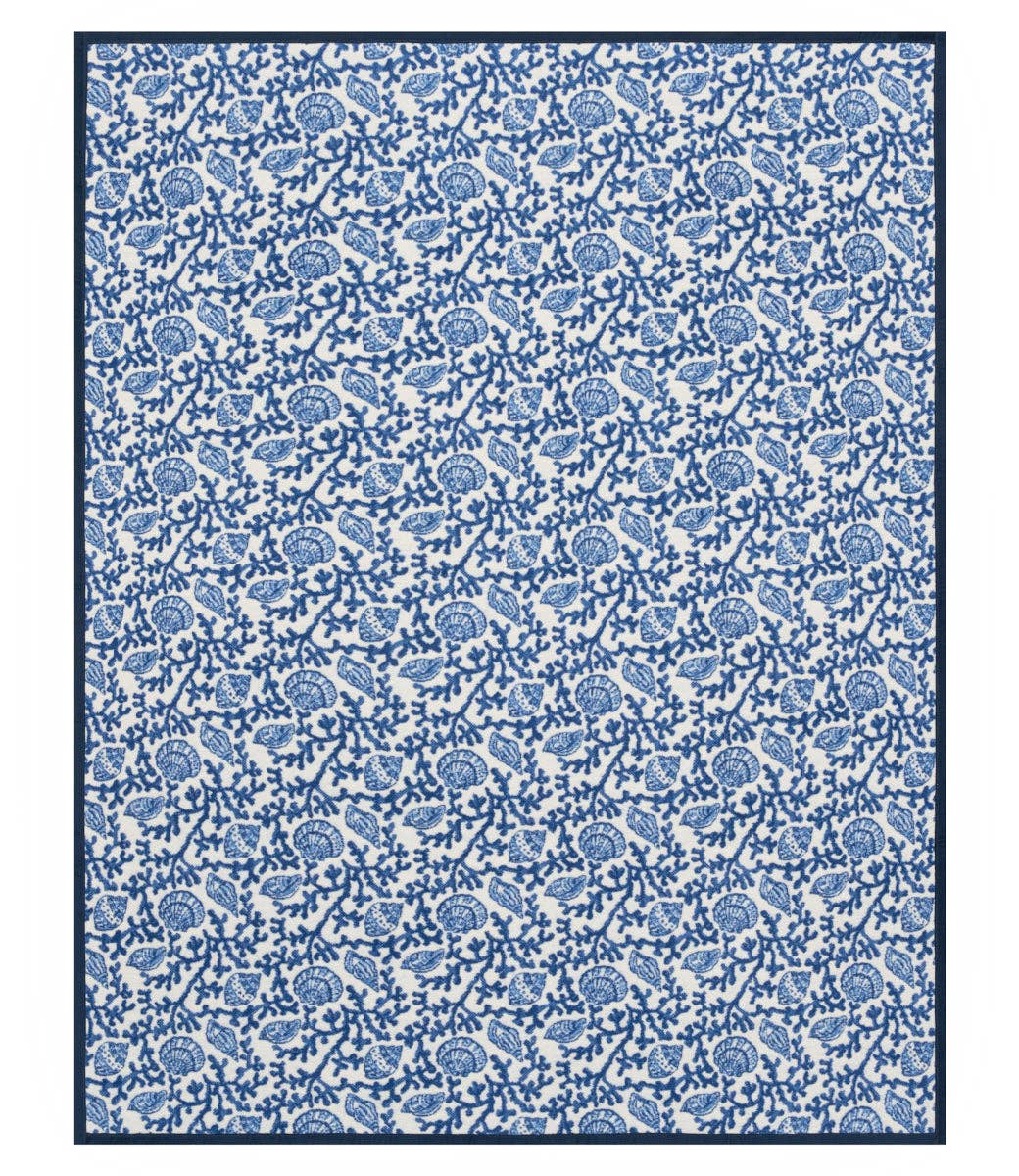 Bring a touch of coastal charm to your home with the Coral & Shell Blanket. This beautiful design features painterly coral and shell motifs in crisp blue and white, inspired by traditional block prints and seaside escapes. The pattern feels both fresh and timeless, making it a perfect accent for coastal or classic interiors.