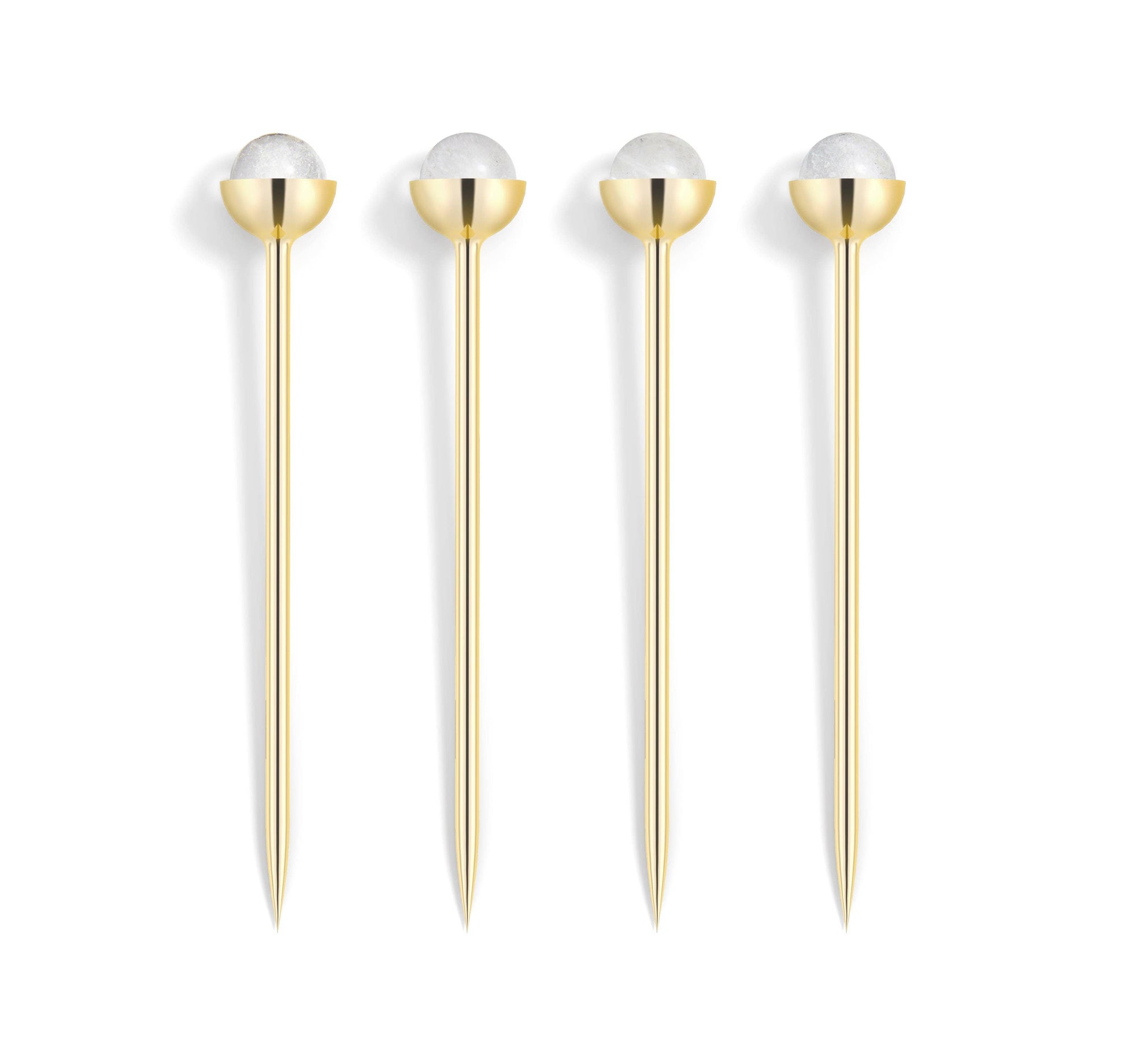 Hospitality Cocktail Picks, Crystal & Gold, Set of 4