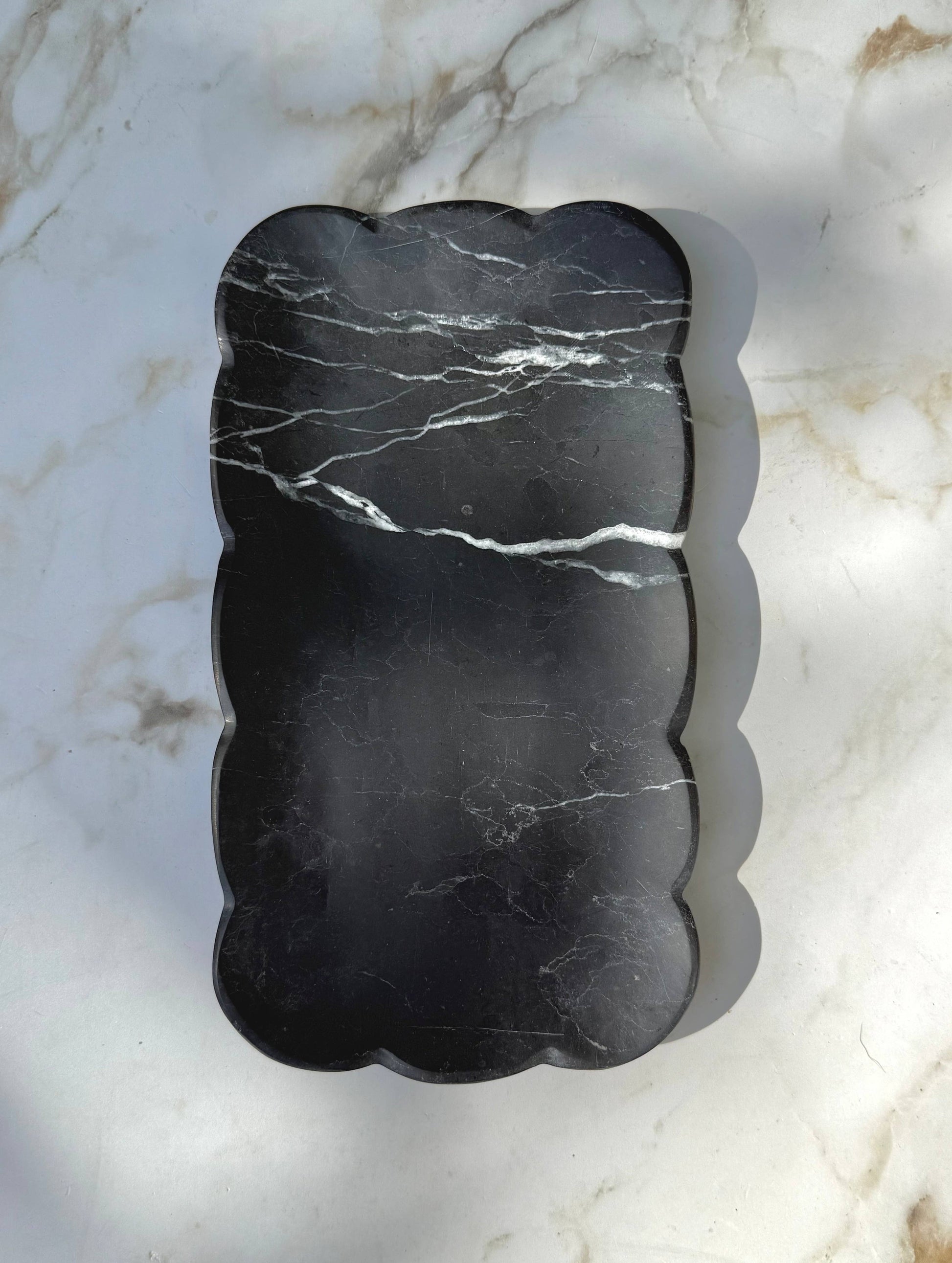 Each piece is unique, with natural variations in color and veining that highlight the authenticity of the marble. Perfect for serving, styling, or as a statement décor piece, the Josephine Tray blends artisanal craftsmanship with everyday functionality.
