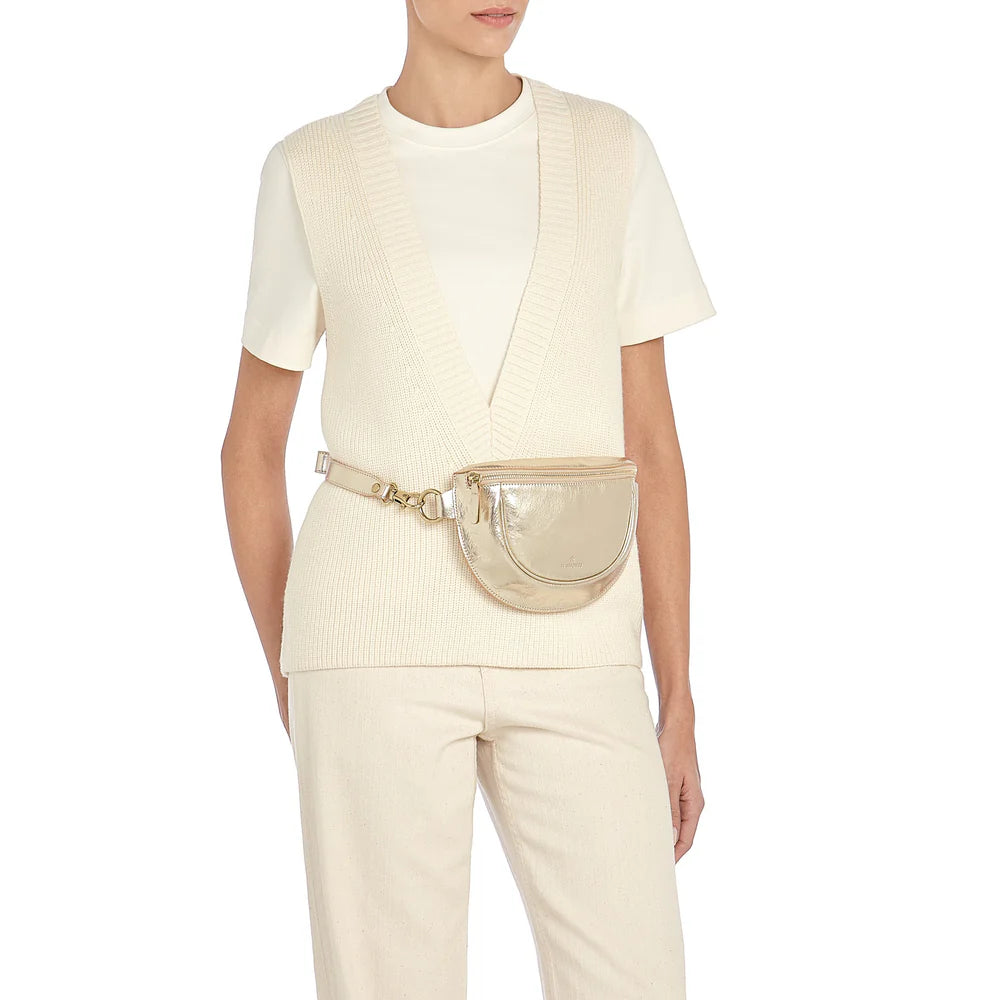 Handmade in Tuscany by master artisans, the Oliveta Belt Bag by Il Bisonte blends timeless Italian craftsmanship with versatile, modern functionality. Crafted from vegetable-tanned metallic leather, this belt bag can be worn around the waist or as a crossbody by adjusting the shoulder strap with a brass stud. The zip opening features a hand-sewn leather pull, and the interior is lined with durable cotton canvas for organized storage.