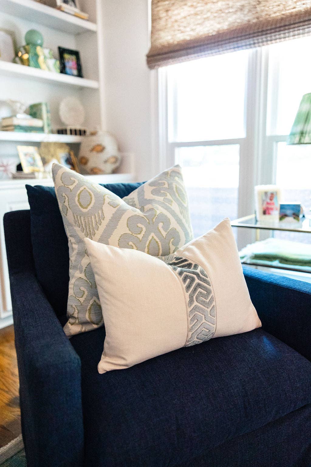 Add a touch of sophistication to your home decor with this beautifully woven ikat printed pillow. The backer seamlessly reflects the patterned front, creating an elegant piece for any room in the house.
