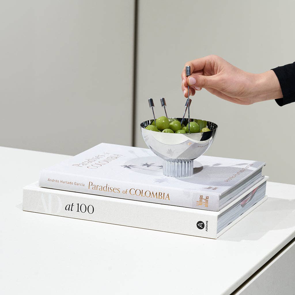 Striations Cocktail Picks in Holder, Silver, Set of 4