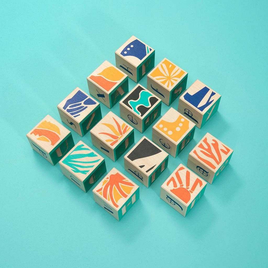 Bring the ocean ashore. One side of each block reveals a closeup of the sea creature featured on its opposite. Colorful Art Nouveau letters grace the remaining sides. See and feel two debossed letters on each block. This set contains an extra A and E, as well as printed lowercase letters. A companion to our Bird, Flower, and Bug sets.